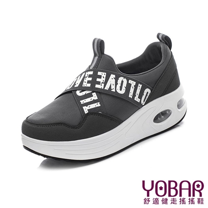 個性英文印字交叉織帶舒適布面休閒美腿搖搖鞋 灰 |