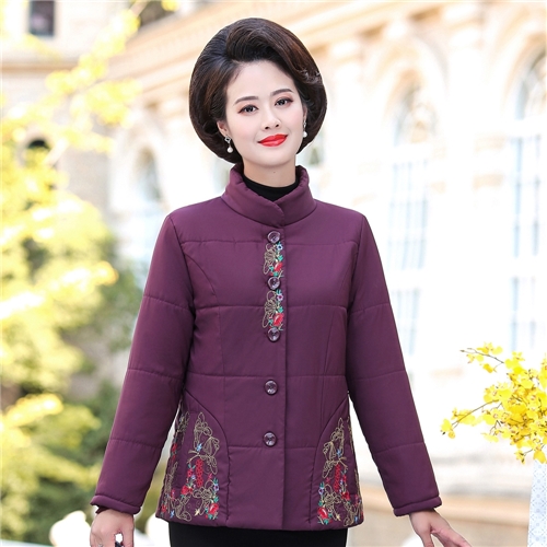 唯美花朵拼接小立領鋪棉保暖修身外套 (3色可選) |