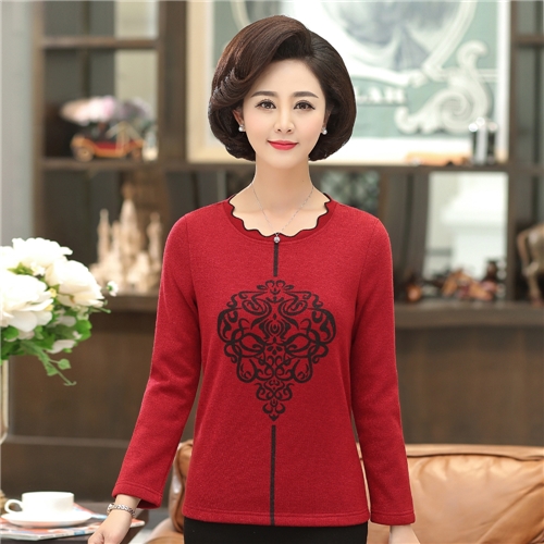 復古圖騰造型荷葉圓領長袖上衣 (3色可選) |