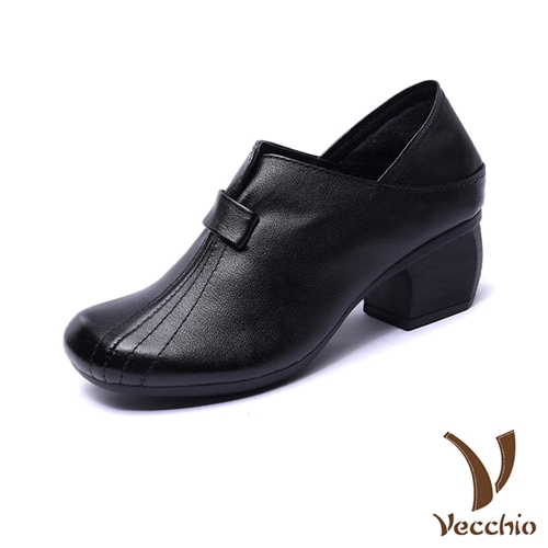 全真皮頭層牛皮典雅兩穿法設計粗跟樂福鞋 黑*VECCHIO* |