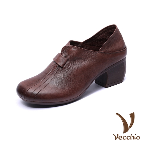 全真皮頭層牛皮典雅兩穿法設計粗跟樂福鞋 棕*VECCHIO* |